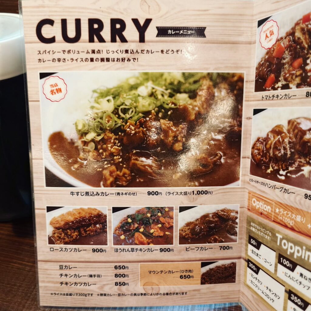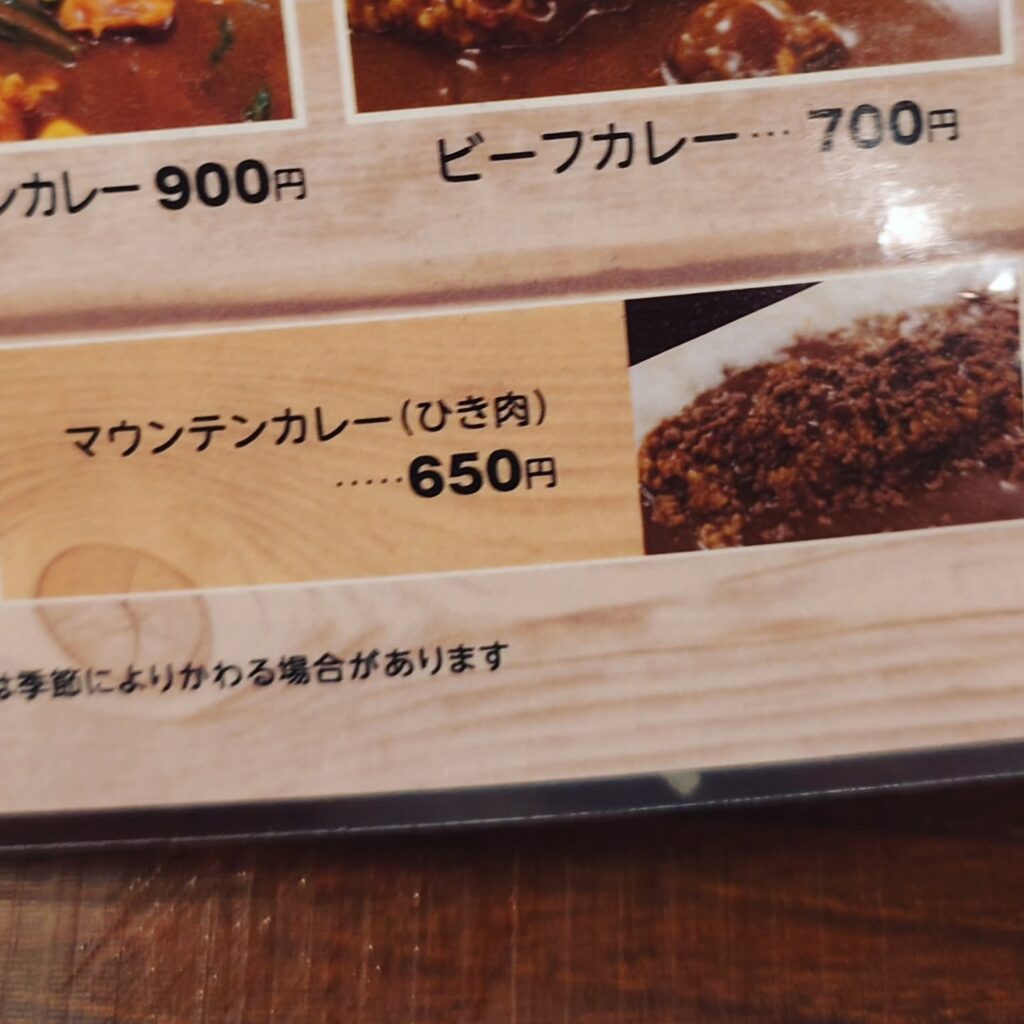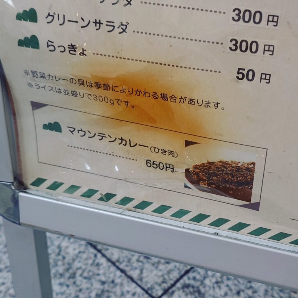 店外のメニューでも、やはり一番下の目立たない場所にマウンテンカレー(ひき肉)650円が。