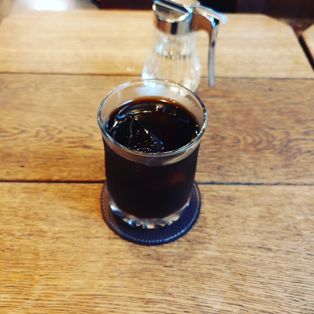 ここのアイスコーヒーは、苦味やコクのバランスが良く、氷は透明でおいしく、上に末広がりのちょうどいいサイズ感のグラスなど、自分のなかでは一番です。