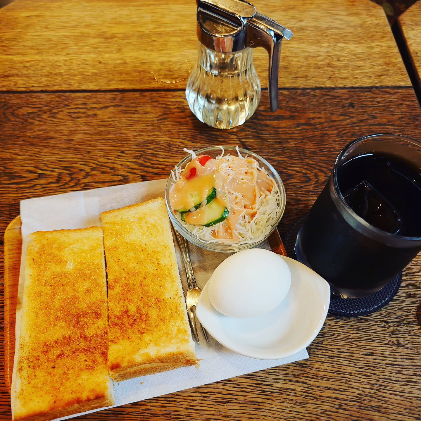 チェーン店のモーニングセットは少々味気なく、こんな町喫茶店のモーニングセットは、貴重になりつつありますね。