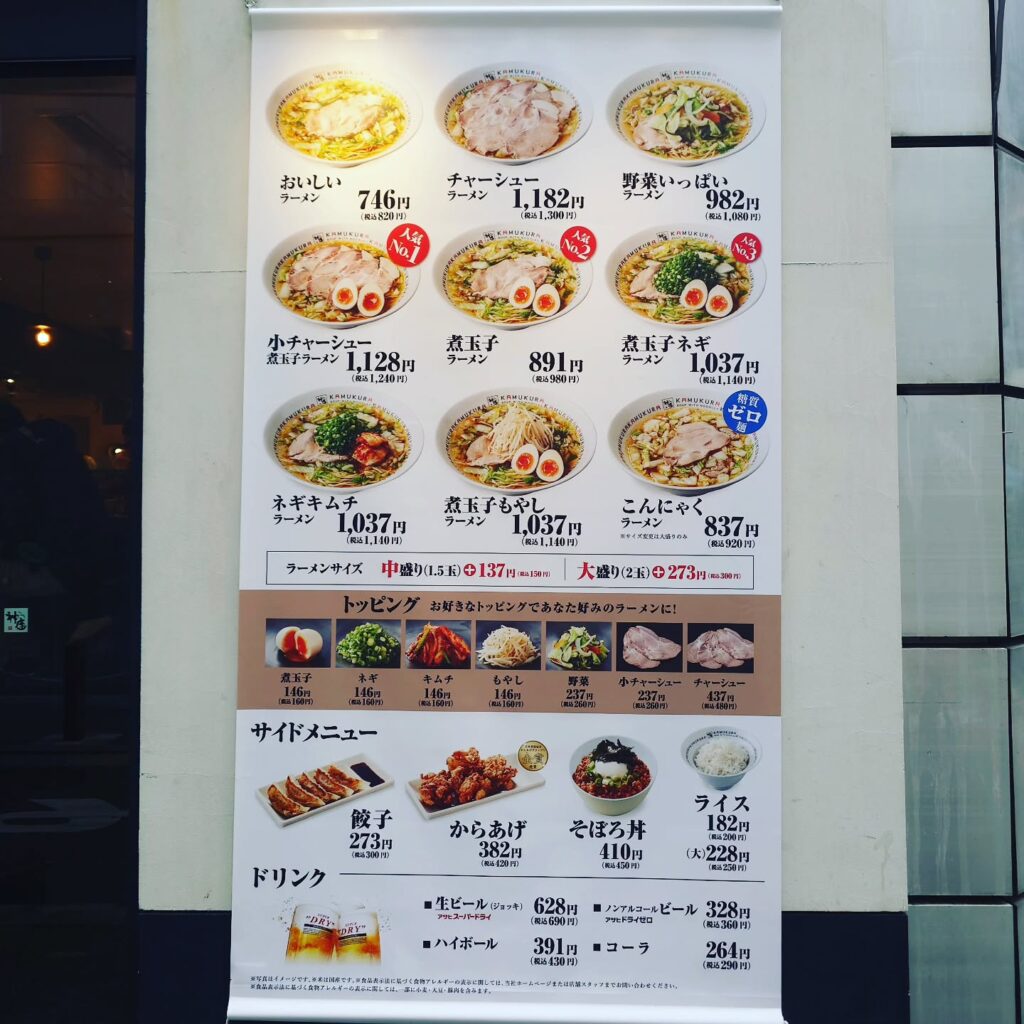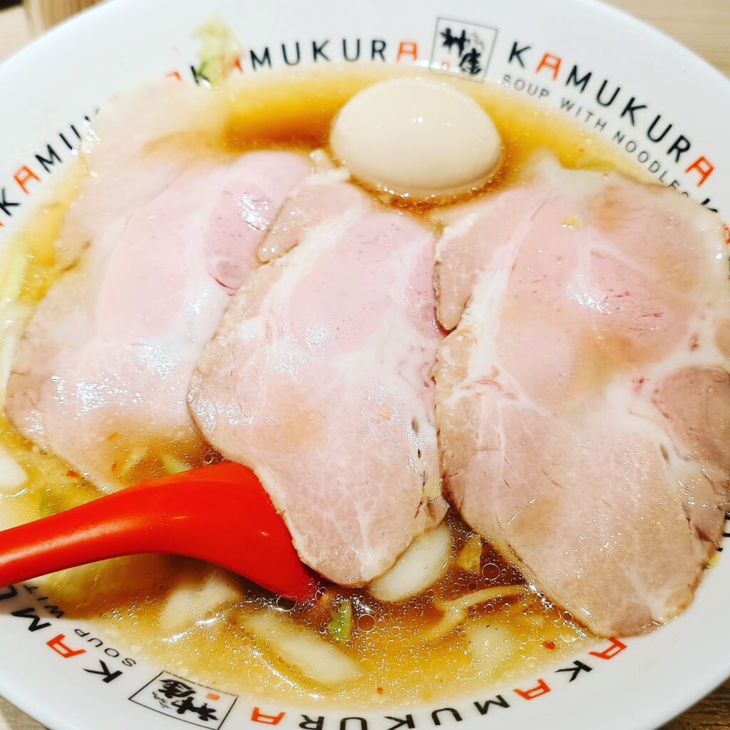 ●神座(かむくら) 大阪心斎橋: 小チャーシュー煮玉子ラーメン 1128円(税込み1240円)