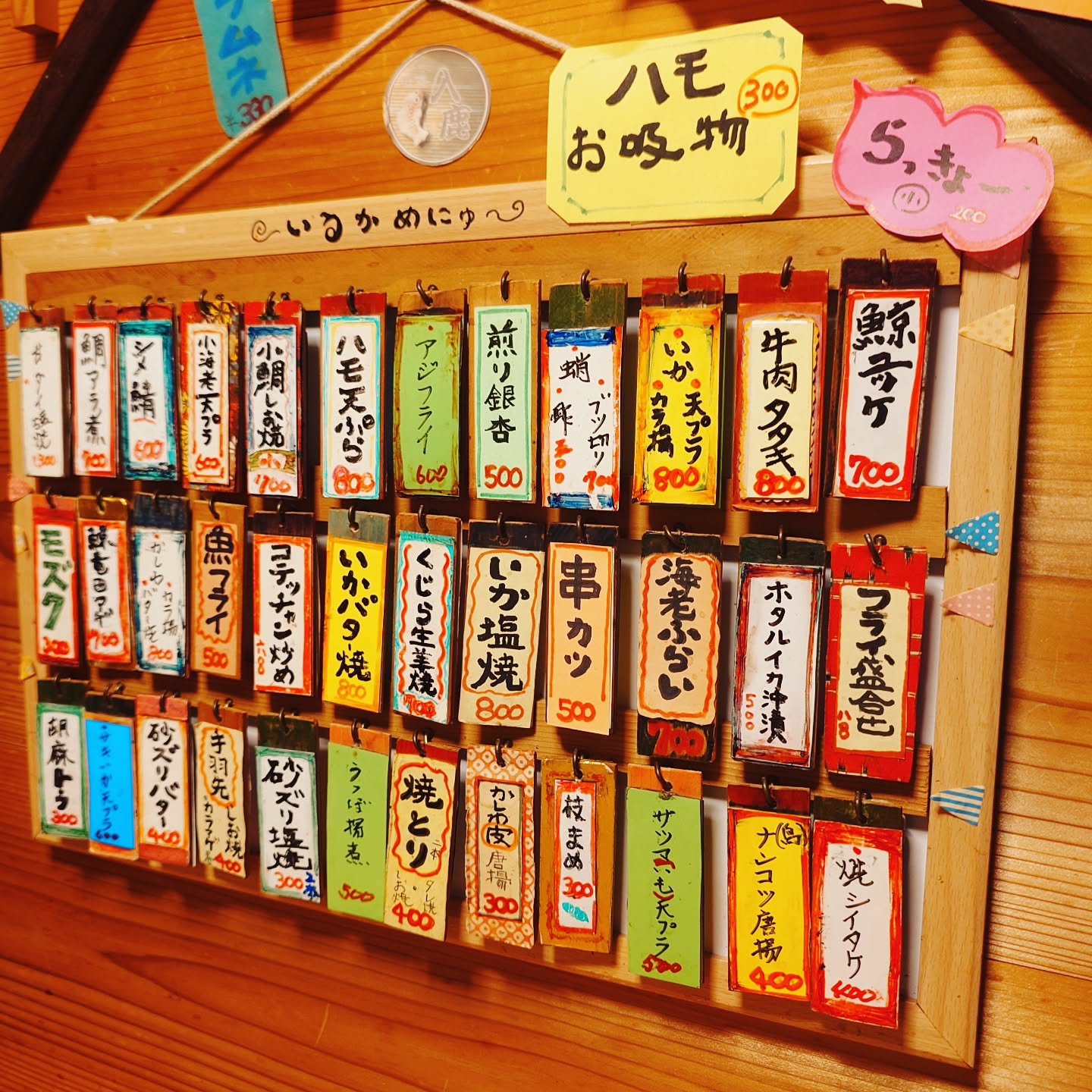 仕切りの壁にある、このカラフルなメニューボードが楽しい。