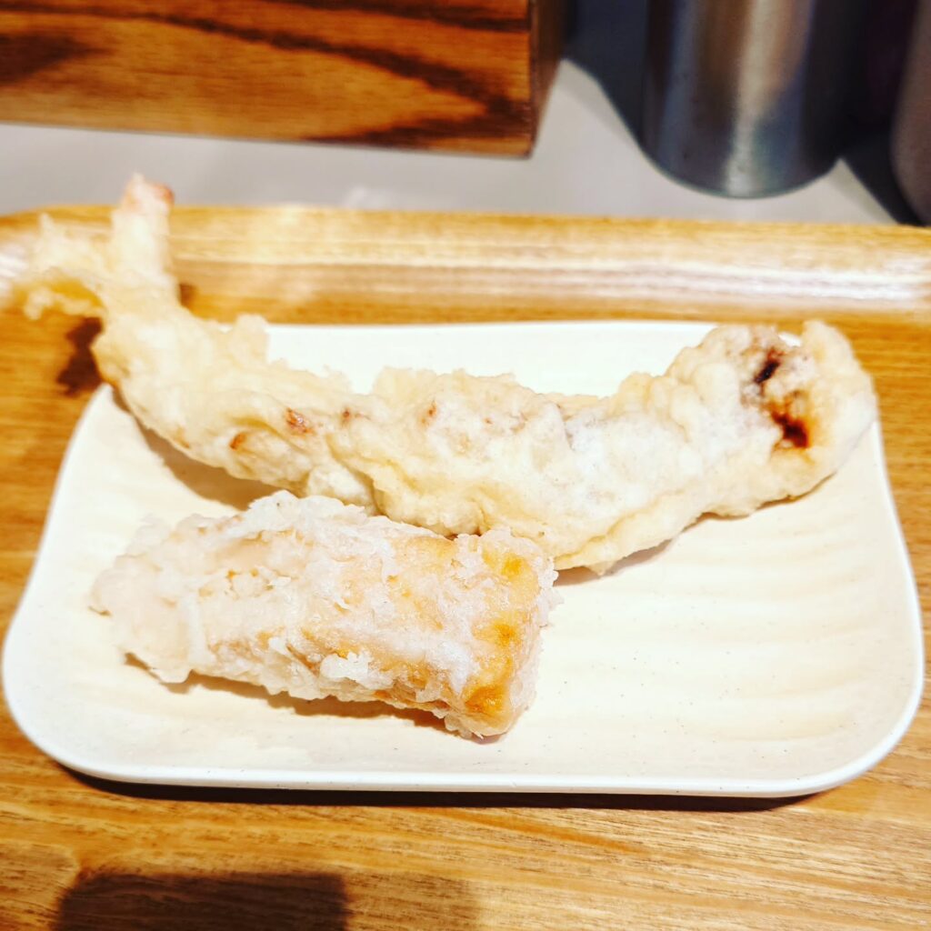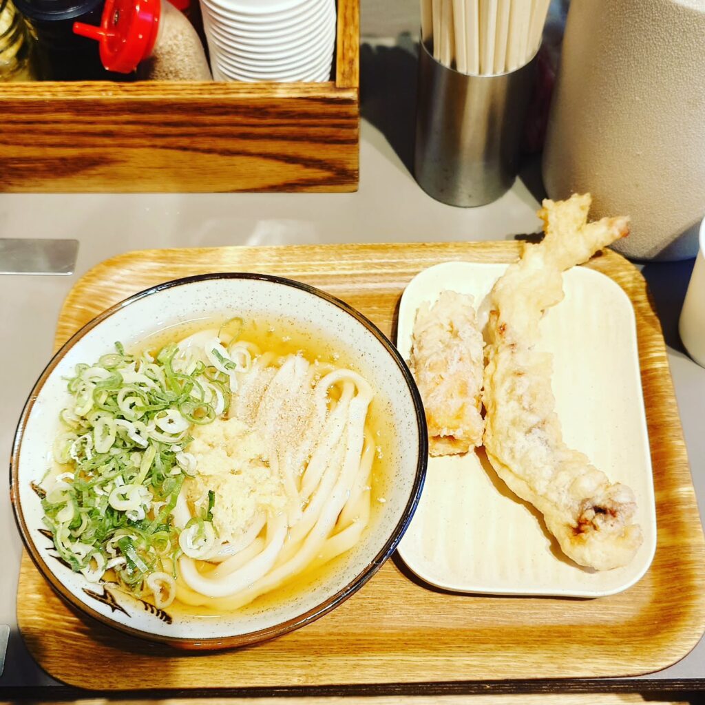 ●Udon Kyutaro 大阪本町: ひやかけ600円、ゲソ天120円、エビちく天120円(いずれも税込み)