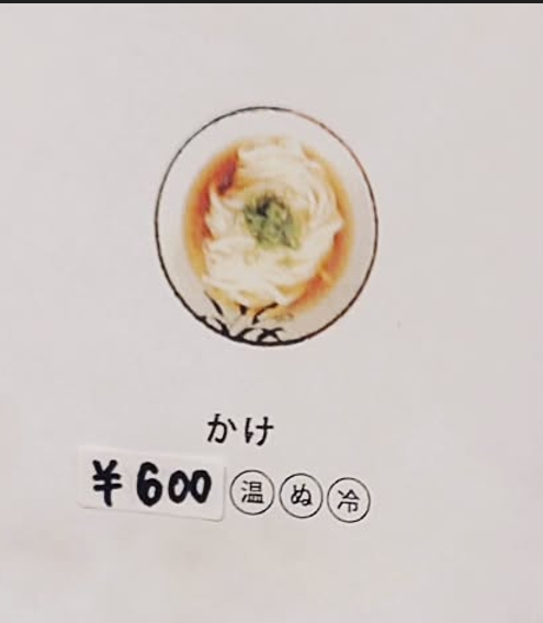 そして最後に、帰りにメニューをみたら、かけの部分に、温、ぬ、冷、と書かれていることに気づきました。