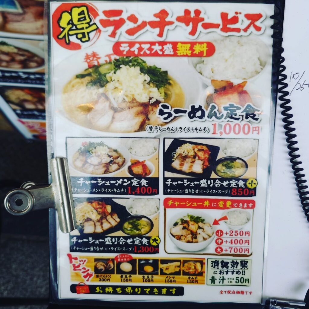 ●にんにくらーめん賛平 大阪鶴橋: チャーシュー麺定食1400円+煮玉子150円(税込み)