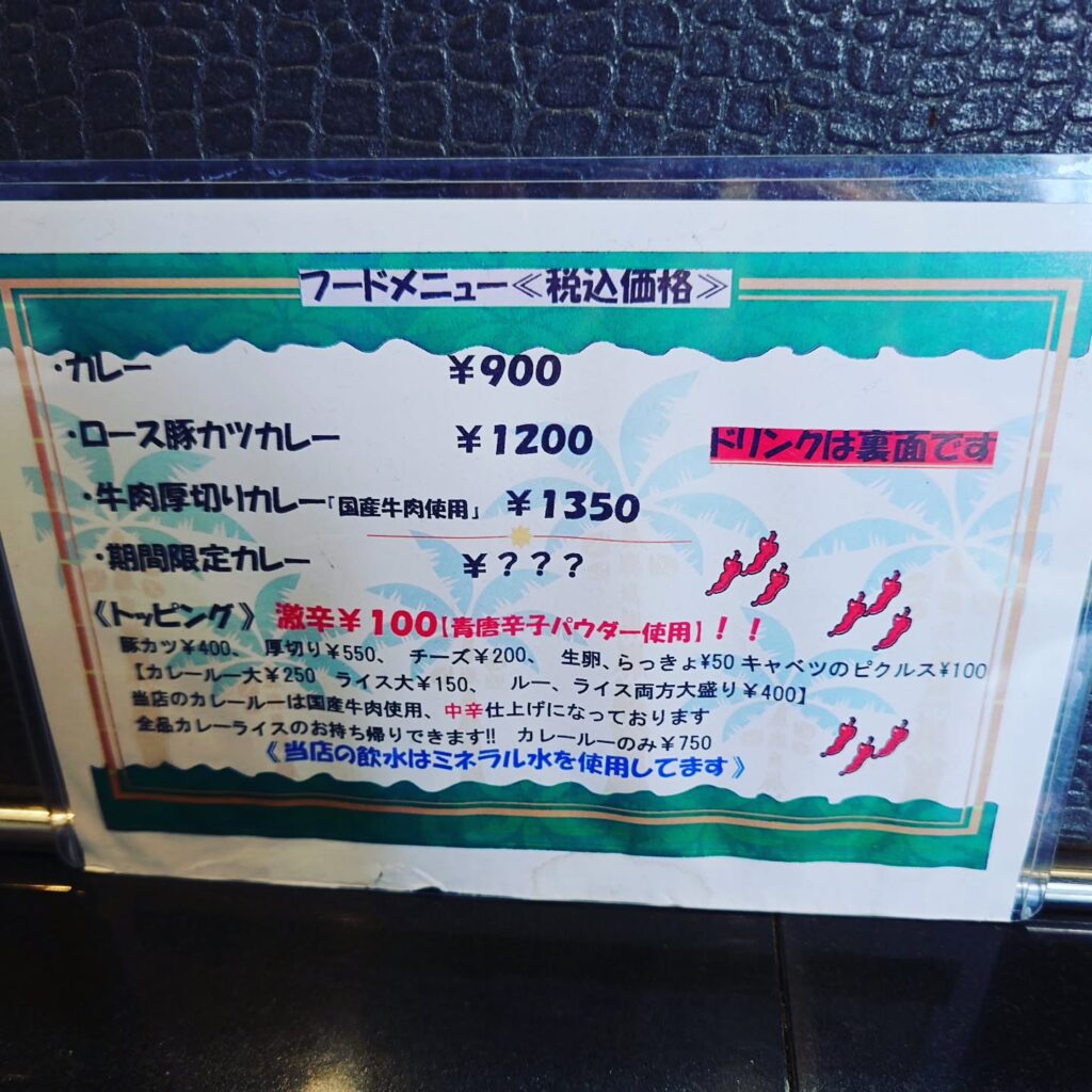 メニューはカツカレーのほか、プレーンのカレー、牛肉厚切りカレーがあります。