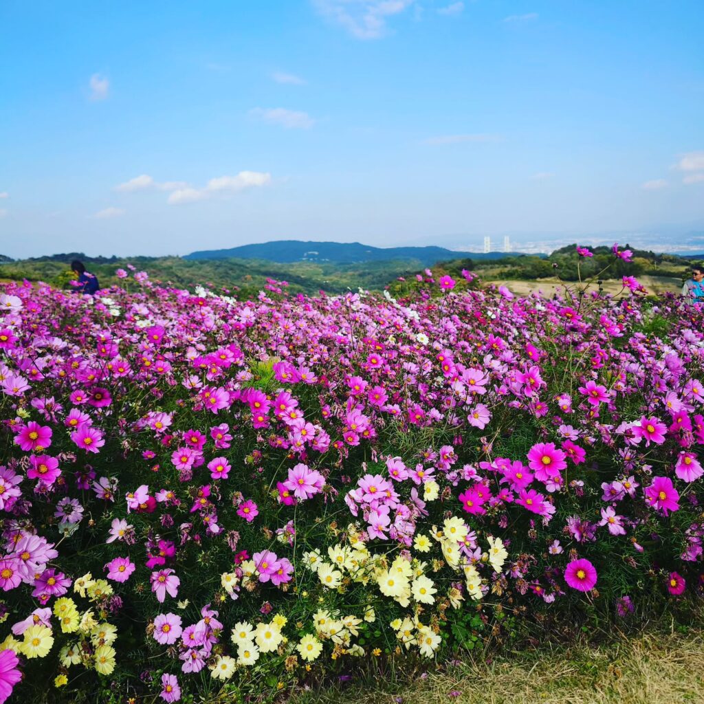 この時期は、コスモスが一面に咲き誇り、遠くに神戸~大阪~和歌山を眺め、気持ちよかったです。