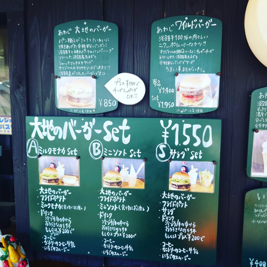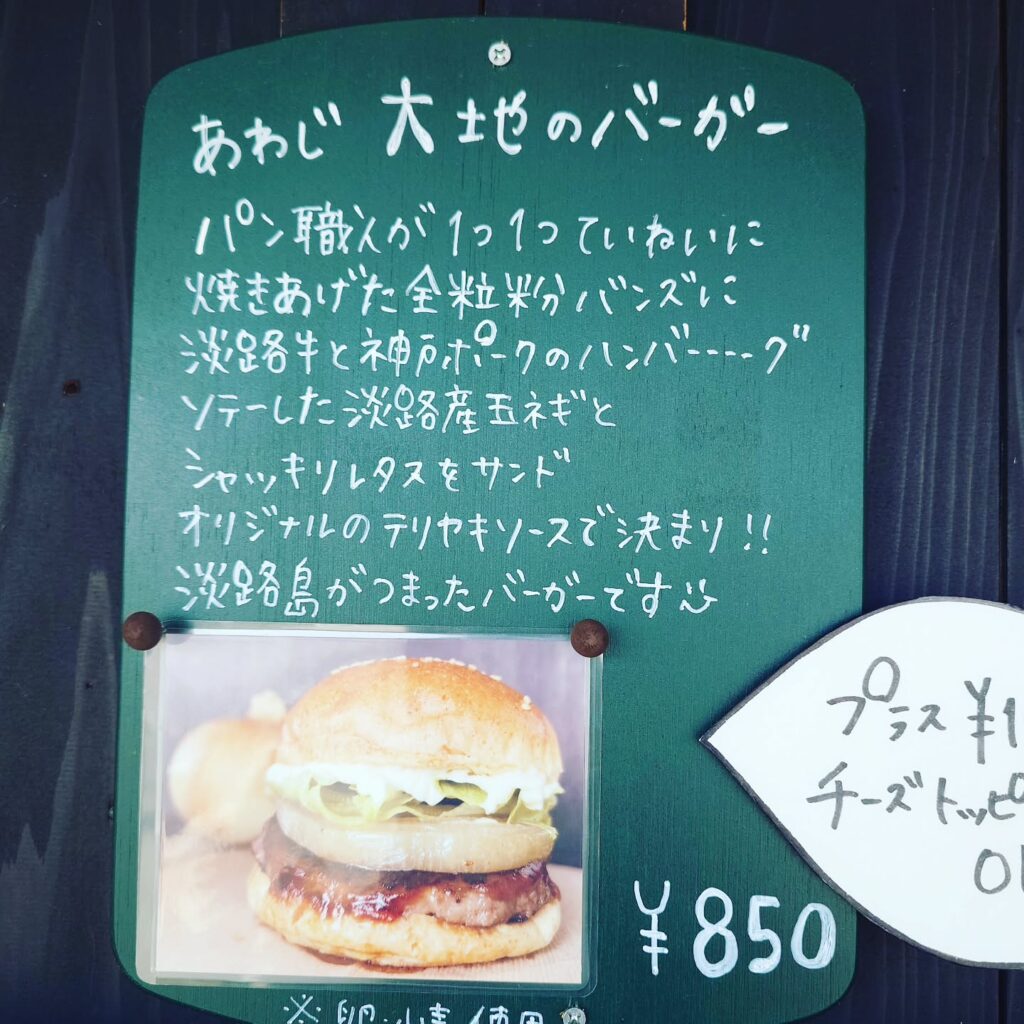 あわじ大地のバーガーは、淡路牛と神戸ポークの合挽きハンバーグ。