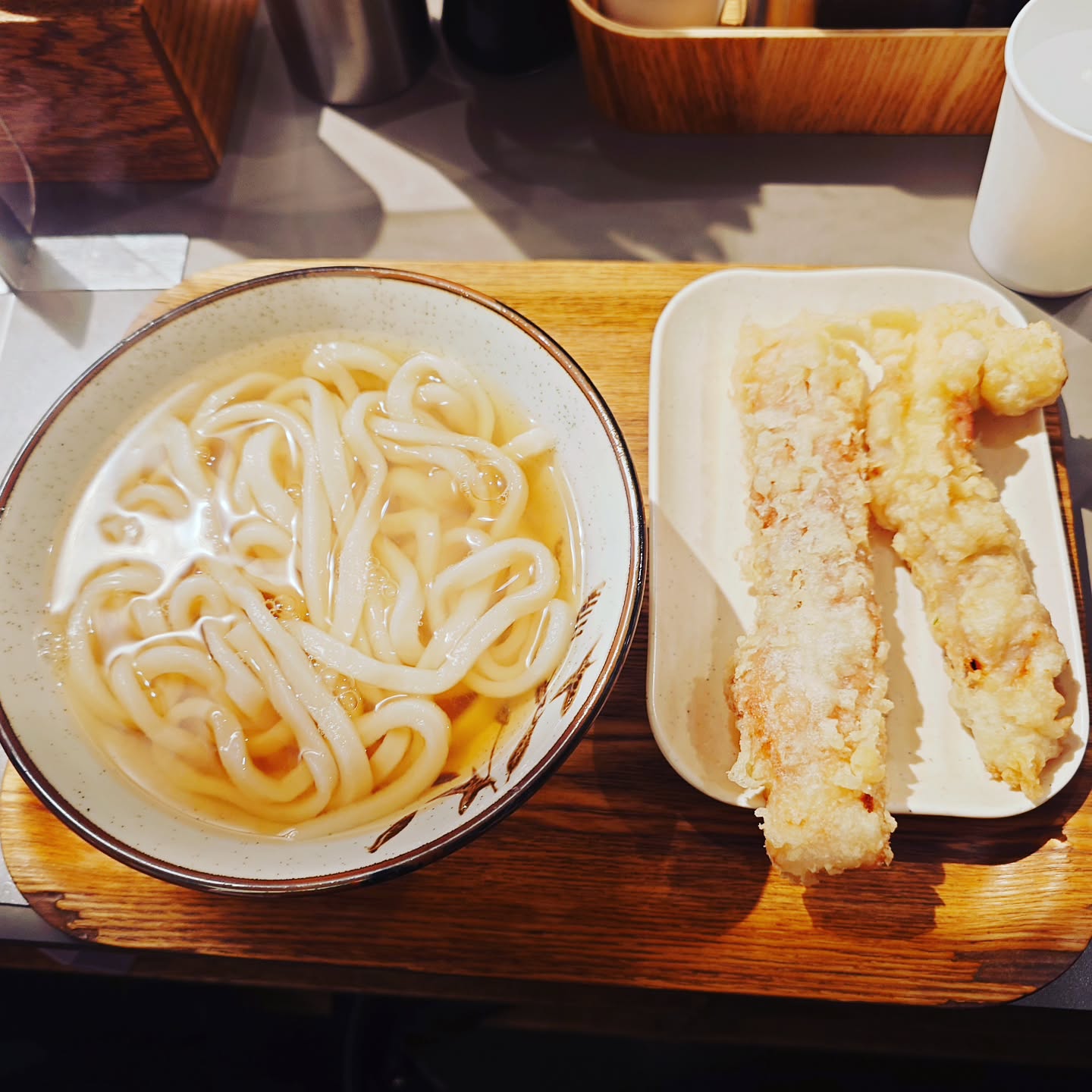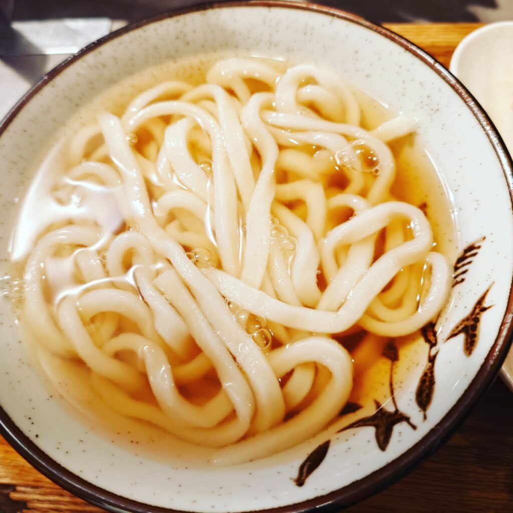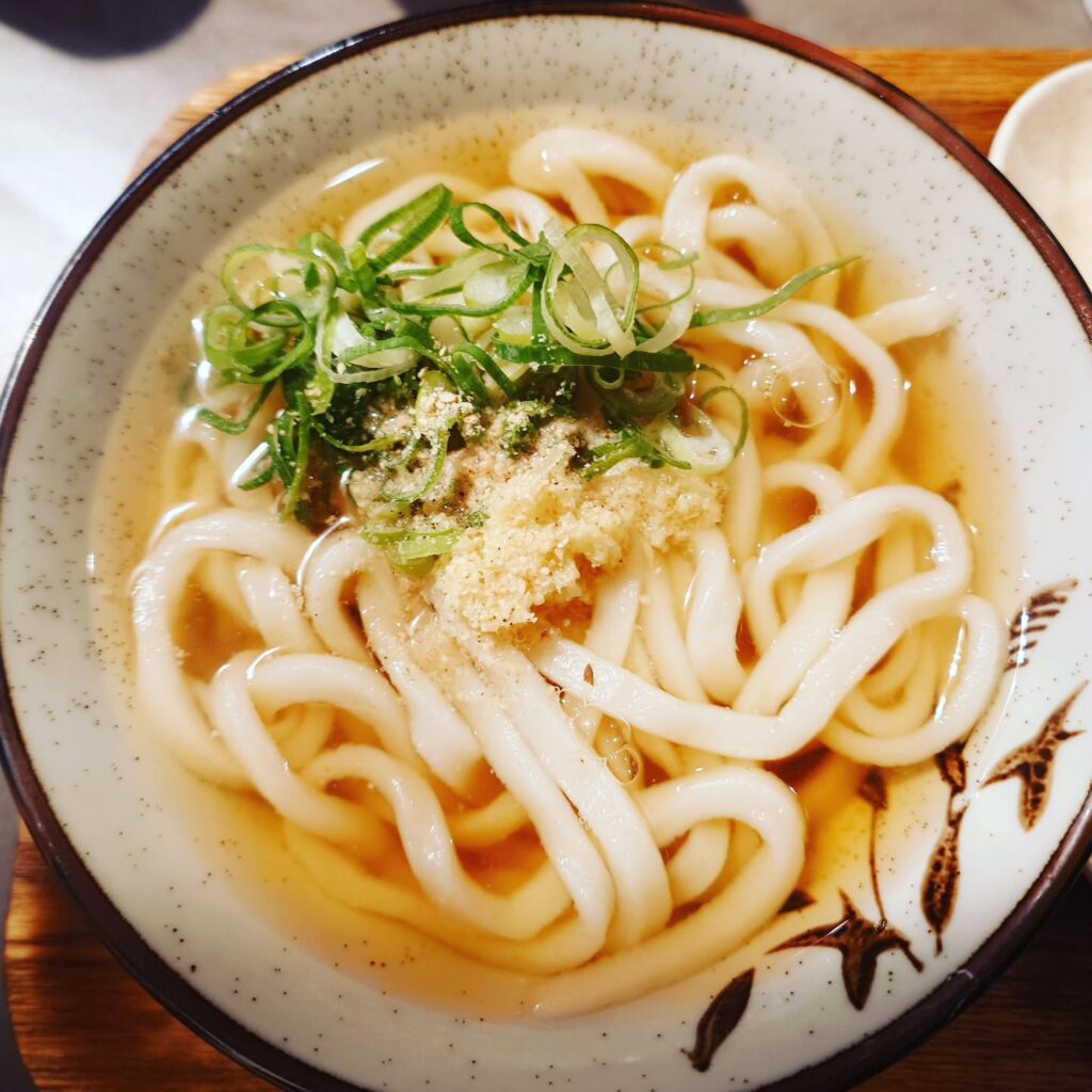 最近、ぬ(別名:ぬる、そのまま、ひやあつ)を初めて食べ、そして今回基本の温かいかけうどんを食べました。