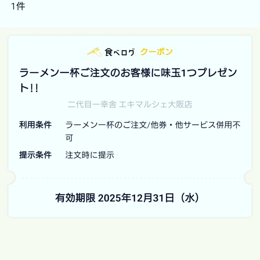 食べログのクーポンで味玉が無料に、ラッキー。
