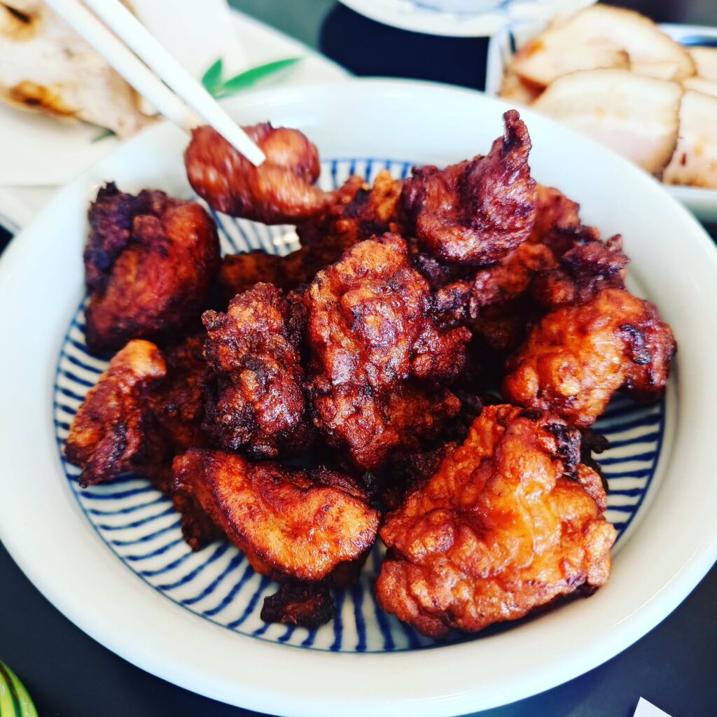 唐揚げは、前日から鶏肉を漬け込んで、揚げたてを持って来てくれました。