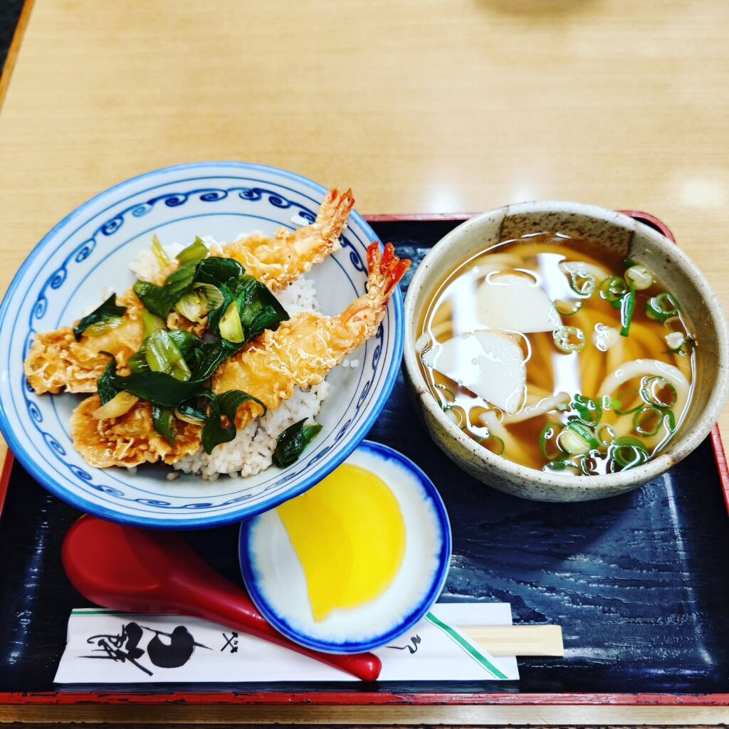 気持ちを切り替えて、天ぷら丼と麺のセットで、温かいうどんにしました。