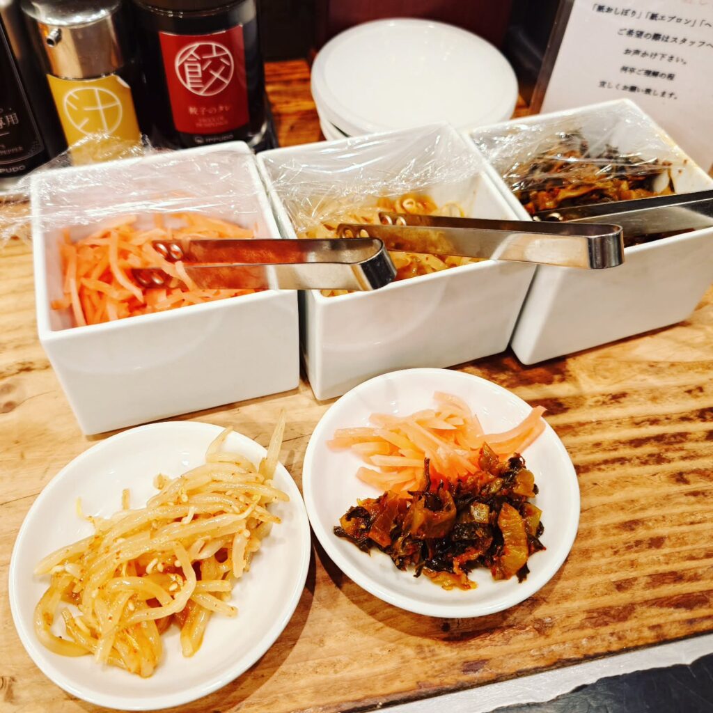 以前はテーブル上に辛もやし、高菜、紅生姜、にんにくが置かれていた。