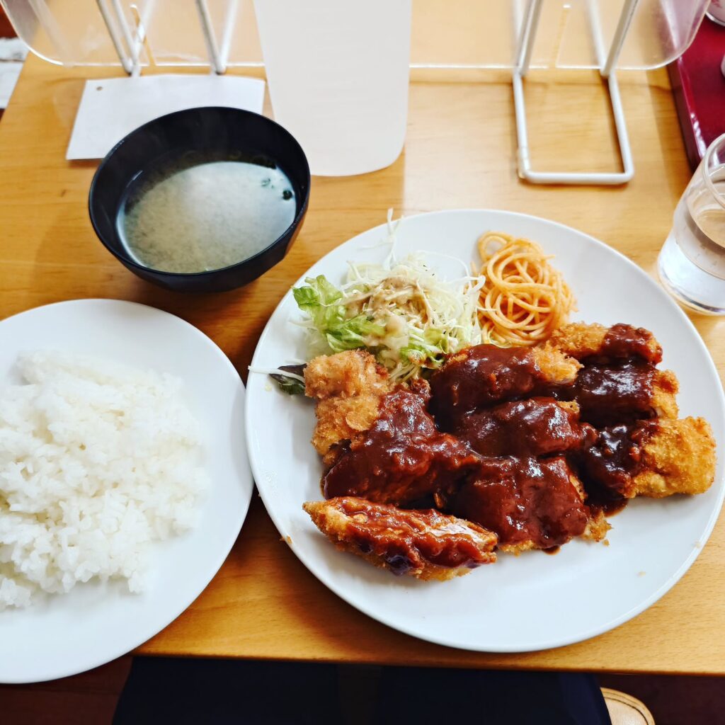 ハンバーグやチキンカツを注文する人も多い。
