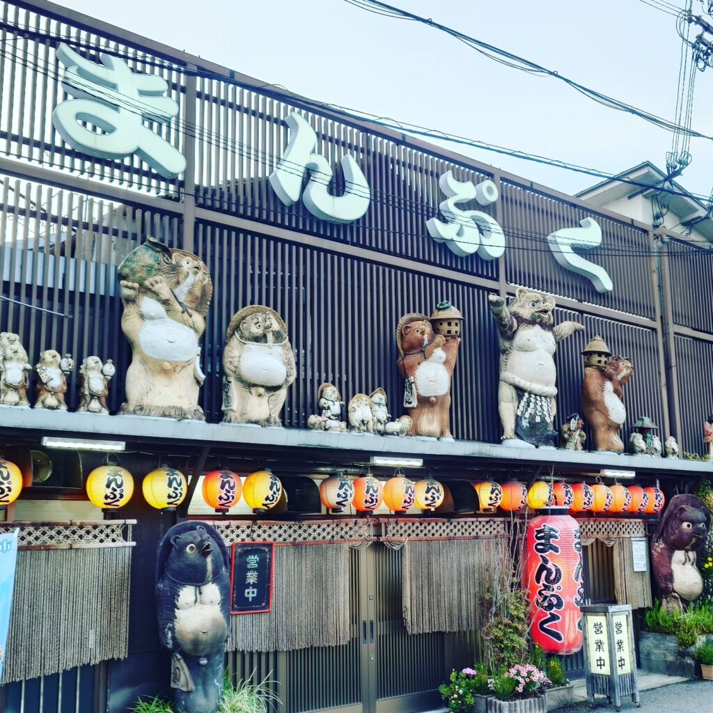 廊下を歩いて行くと、たぬきがお出迎え。