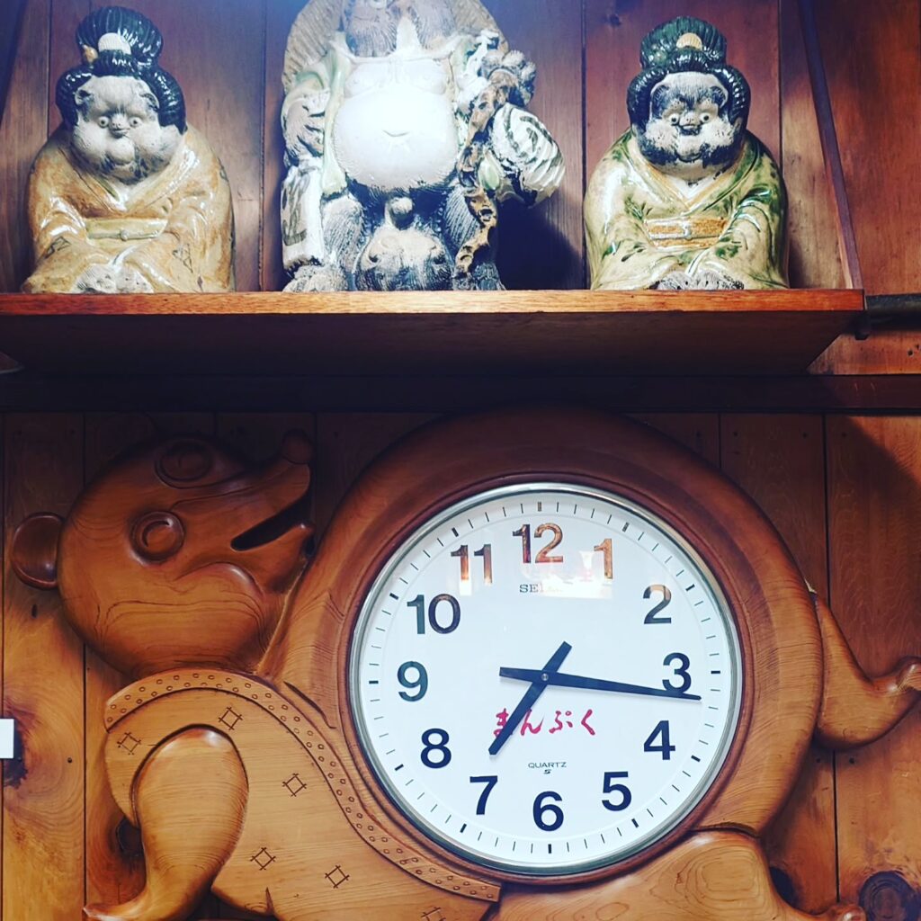 まんぷくは、時計までたぬきだ。
