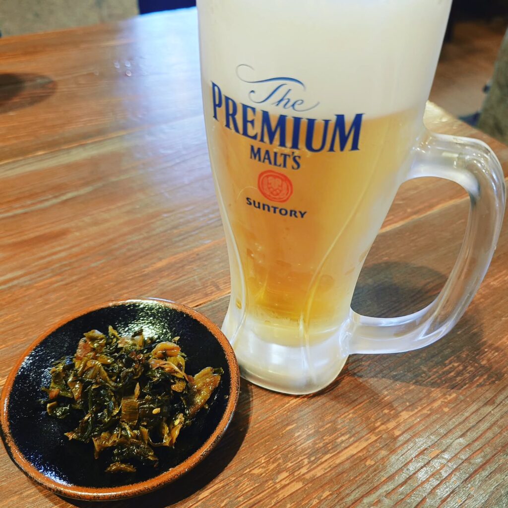 餃子の到着までは、自由に食べられる高菜で一杯。