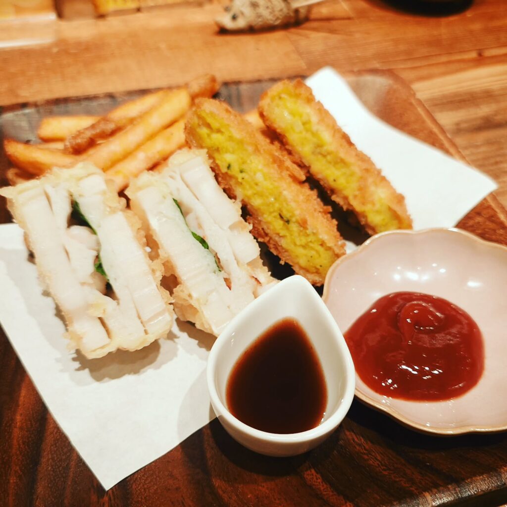スペインバル的な料理が続く中で、ポテトフライやかぼちゃコロッケが出てくるのがサカナノババのコースの面白いところ。