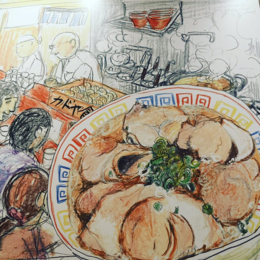 孤高に・・・<カドヤ食堂:つけそば>壁のイラストを見てみよう